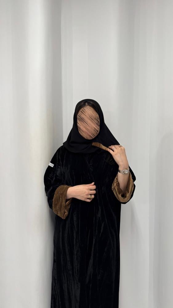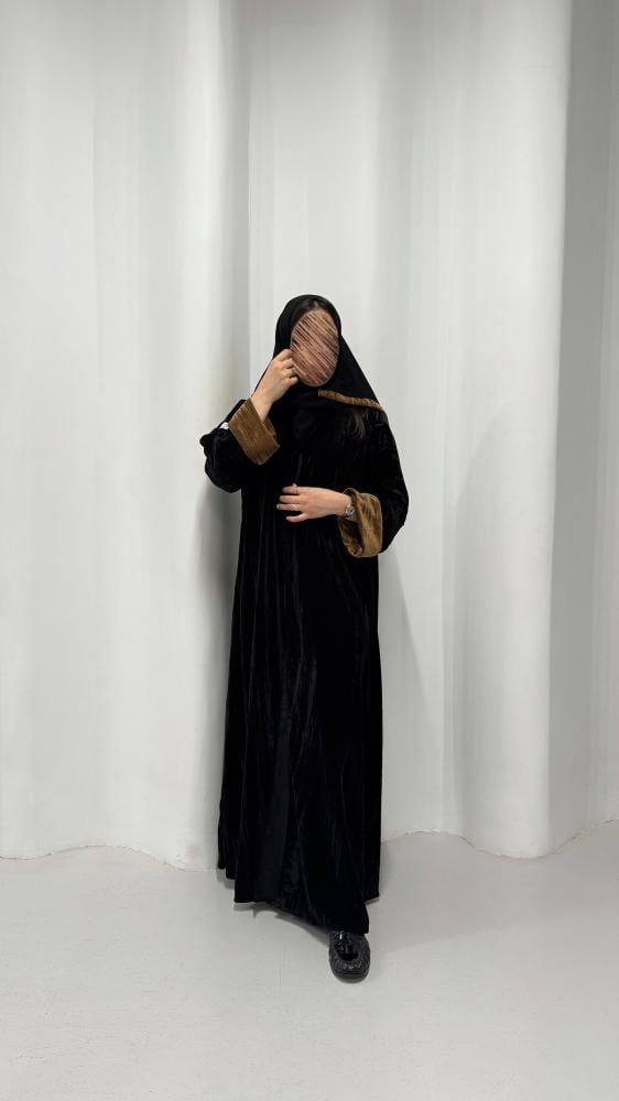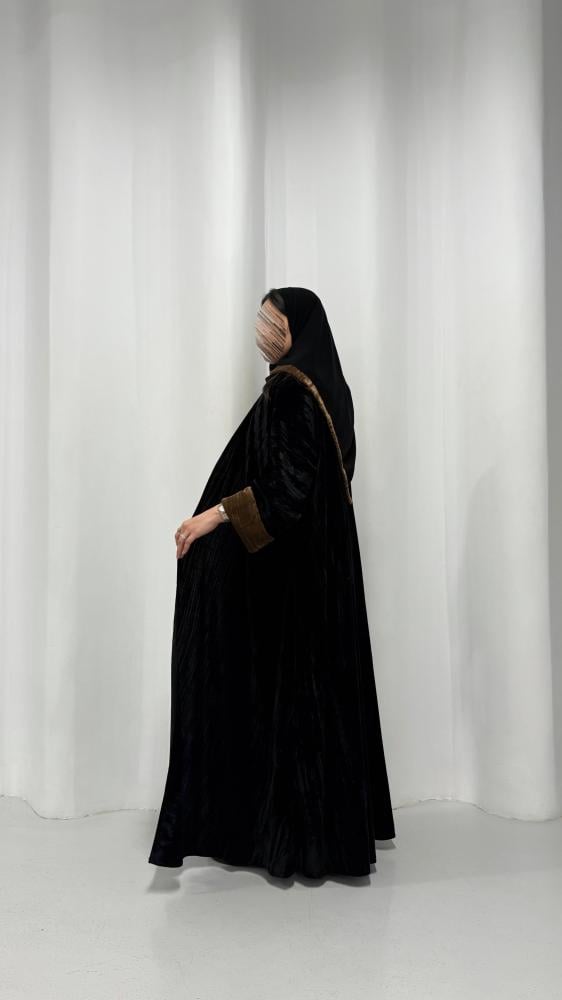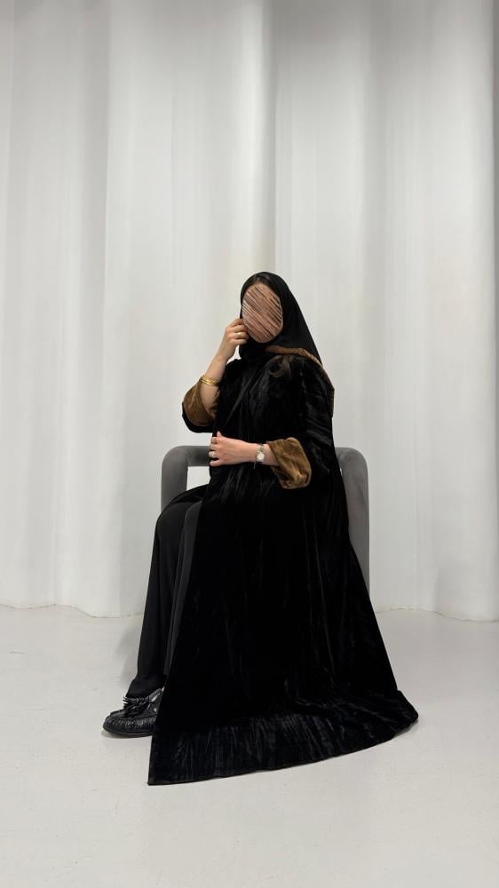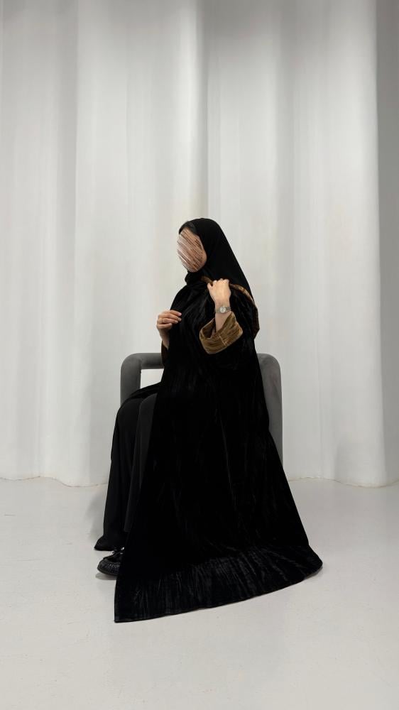 عباية مخمل مكسّر أسود – تصميم عملي وأنيق